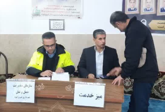 حضور شهردار و رئیس سازمان حملونقل شهرداری فیروزکوه در میز خدمت نماز جمعه