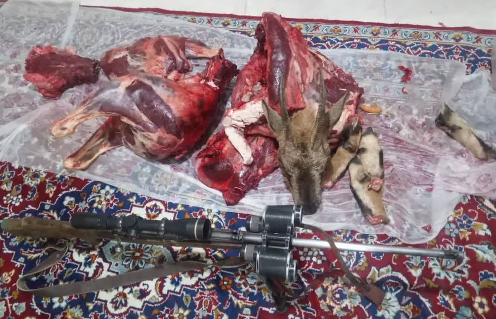 از متخلفین لاشه یک راس بز وحشی، یک قبضه اسلحه برنو کشف و ضبط شد.