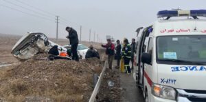 دو مصدوم در حادثه انحراف و واژگونی خودروی سواری در محور فیروزکوه–دماوند