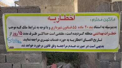 اخطاریه برای مالک محترم زمین واقع در خیابان تختی جنب پارک