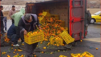 واژگونی کامیونت حامل مرکبات در محور فیروزکوه