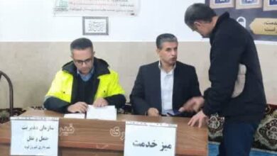 حضور شهردار و رئیس سازمان حملونقل شهرداری فیروزکوه در میز خدمت نماز جمعه
